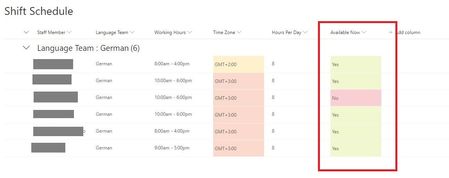 I am trying to create a shift schedule in a SPO List. Ideally we should have an option for each person to set themselves as available. For that i created a yes/no column called "Available now" S...