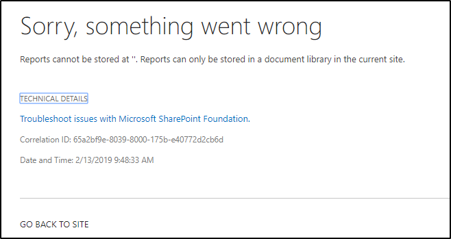 I am getting the generic error while enabling audit settings for SiteCollection in SPO. Usually, the reporting location will be an optional field. Any thoughts/suggestions please?