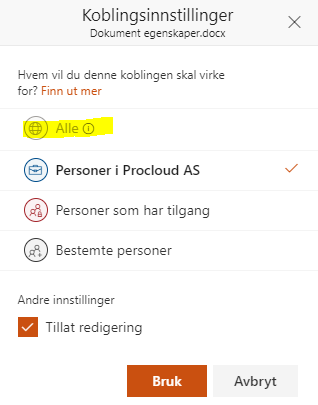 I am trying to share a document with an guest in SharePoint/groups. But can not activate the "All"option, due to company policy.