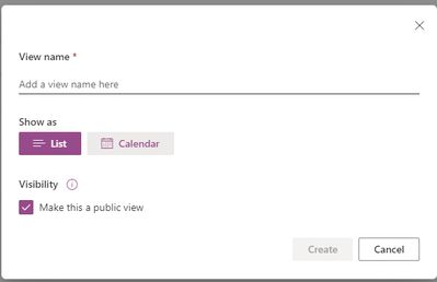 A pop-up box appears where you simply name your new view, click on the calendar button, then click Create.