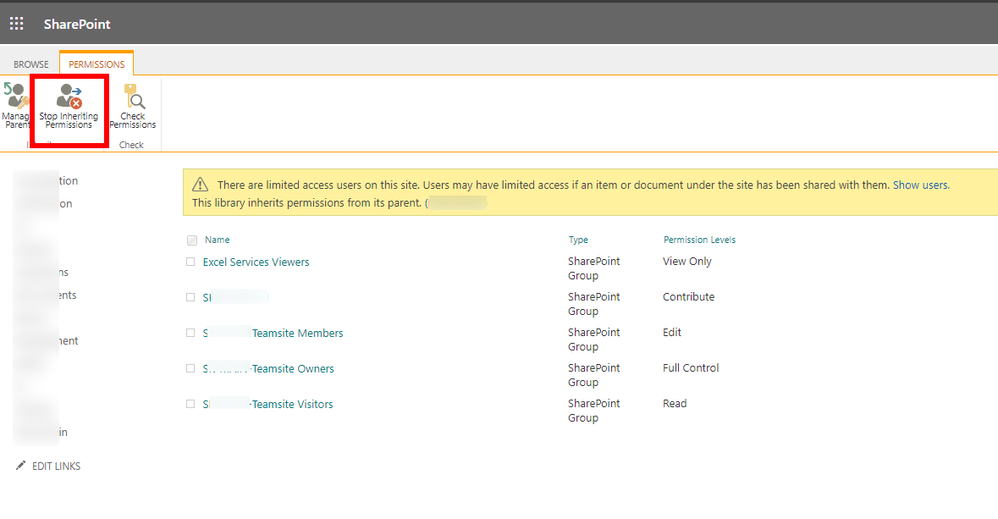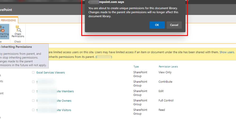 When you are clicking on "Stop inheriting permissions", you will have that error message: