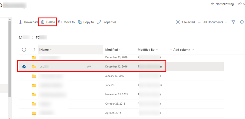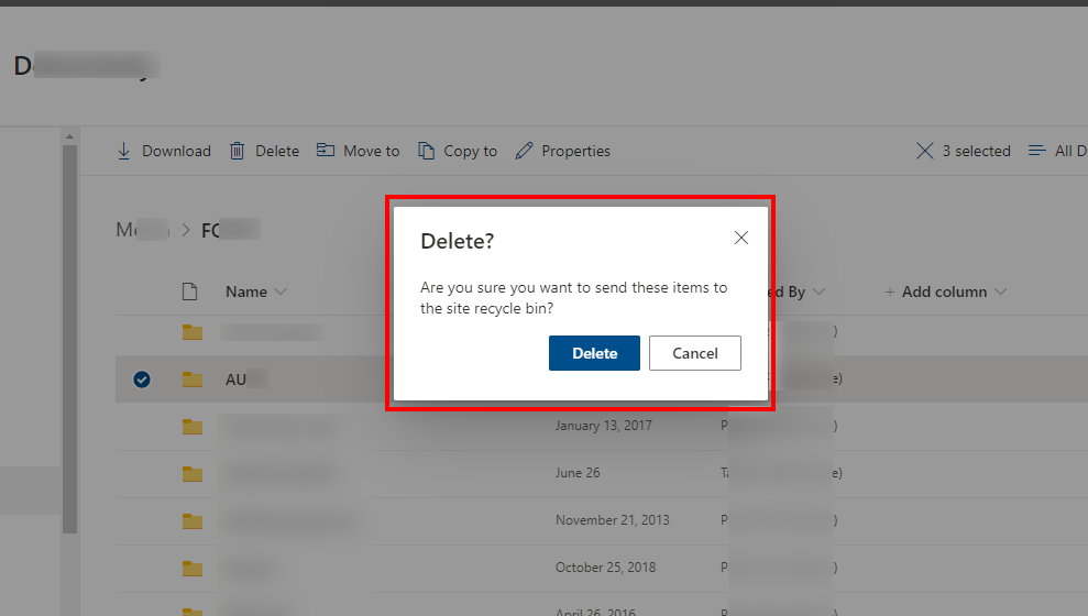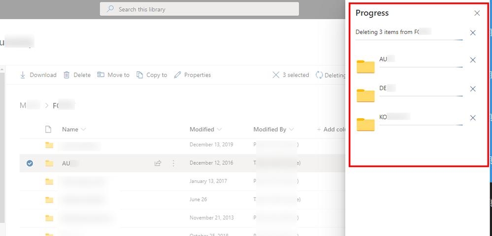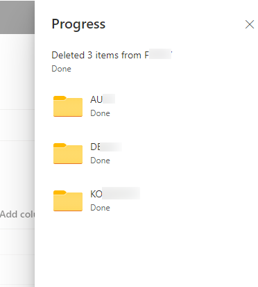 When the deletion is completed, you can go in your Site Recycle Bin to control the presence of those deleted folders: