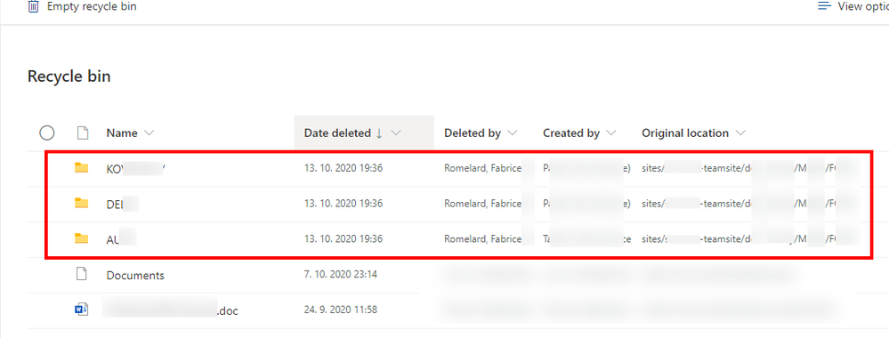 When the permission set is correctly configured, you can go into the Recycle Bin, select your deleted folders and click on "Restore"