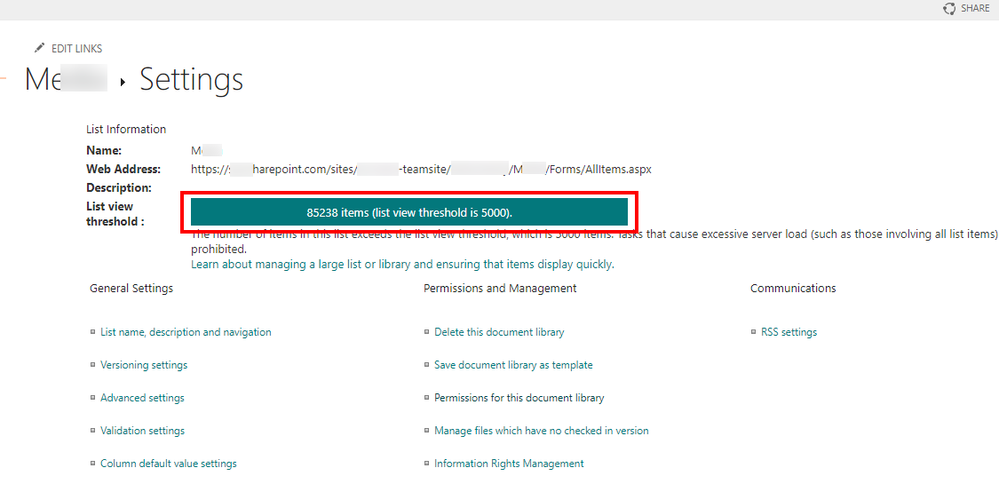 You can now go back into your Library Settings and control you have less than the limitation imposed by Microsoft: