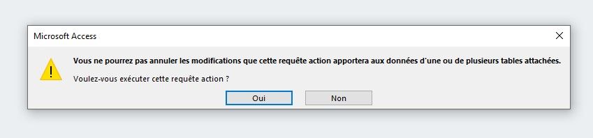 When I launch from ACCESS an UPDATE query to update my SHAREPOINT list or a DELETE query to empty my SHAREPOINT LIST, ACCESSs asks me to confirm the update or deletion.