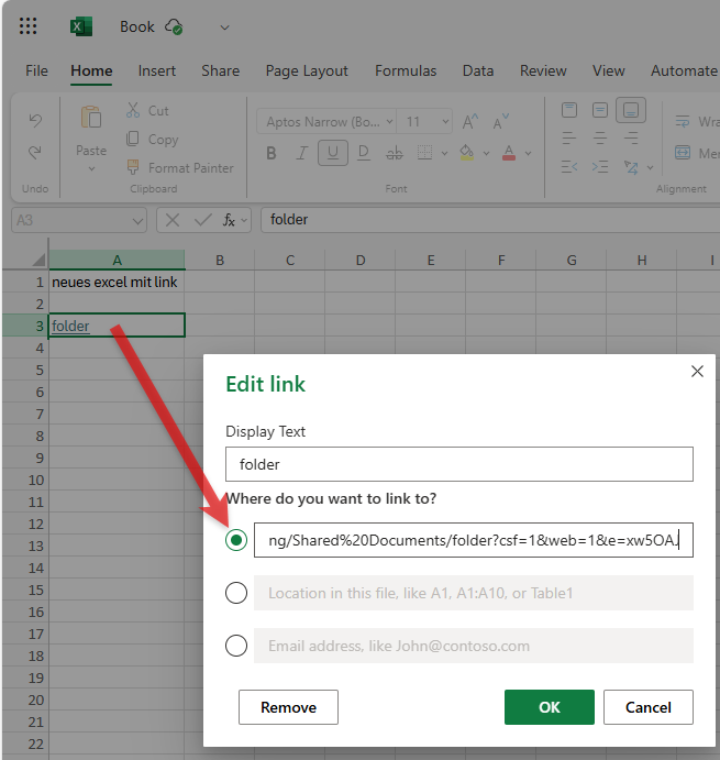 When I copy the link to the related folder and try to paste in the spreadsheet cell it doesn't come across only inputs a single alpha?