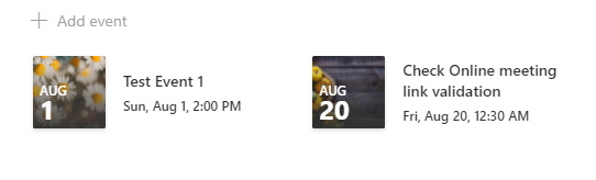 For some reason, after going to the event page, it removes the email from the URL. All that remains is - JoeFoxCopper ContributorNot sure if this is by design, but I notice that users that only have 'view' access to a SharePoint site collection do not see the thumbnail image of each event in the events web part. I have 'Show event images' turned on in the events web part, and generally use images from the 'Stock images' library, and, as the site owner, the web part looks great for me, but 'visitors' do not see the images in the web part. If they go through to the event itself, they can see the title area image, so I don't believe it is a permissions issue. Wondering if anyone else is experiencing this behaviour.