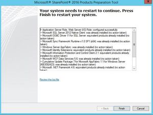 I am testing SharePoint in a VMware lab on a Windows Server 2012 R2 VM. I have already installed the pre-requisites for SharePoint 2016 and they installed successfully a...