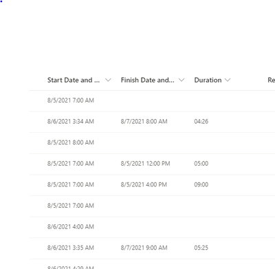 =IF(OR(ISBLANK([Finish Date and Time]),ISBLANK([Start Date and Time])),"",TEXT([Finish Date and Time]-[Start Date and Time],"hh:mm"))