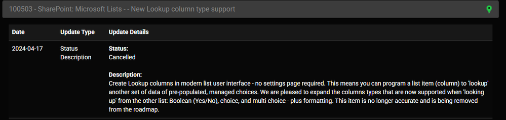Reference: 100503 - SharePoint: Microsoft Lists - New Lookup column type support