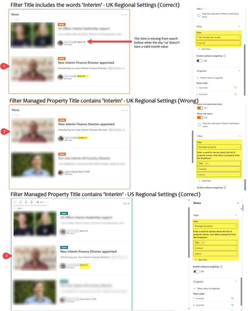 - News webpart on SharePoint site with UK Regional Settings using the 'Title' managed property filter (wrong results)