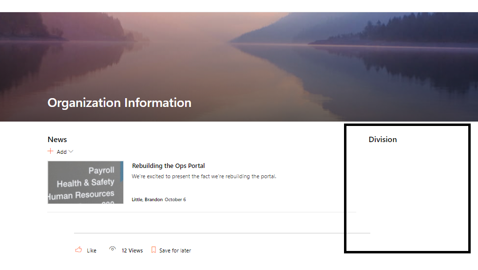 When the page is published, it's not showing division