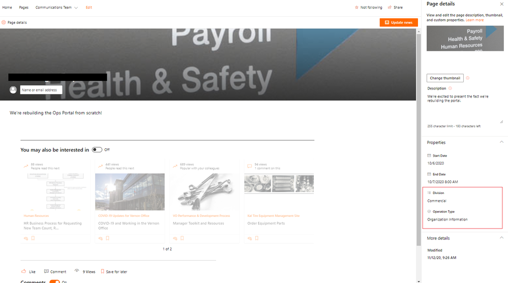 https://support.microsoft.com/en-us/office/use-the-page-properties-web-part-1a99cb9c-a5f1-441b-8e5d-643b0f0ff736