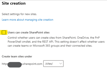 I have a requirement of disabling the normal users' ability to create sites in SharePoint online. Followed Microsoft official guide on this and unchecked the option as below. Reference - https:/...