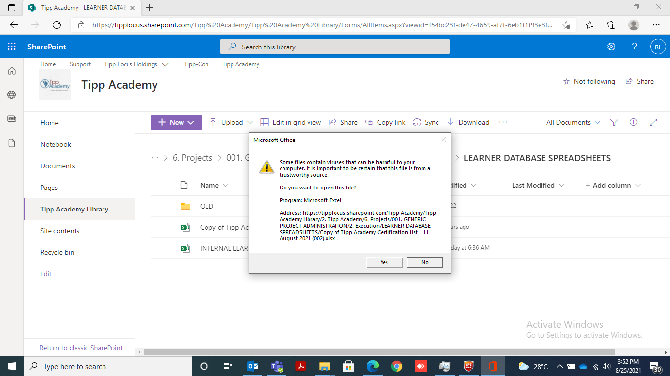 I have challenges with Editing an excel file on the browser, when opened in the browser it opens in read-only mode. when opened in-app it gives a warning message "Some files can contain viruses or otherwise be harmful to your computer. It is important to be certain that this file is from a trustworthy source.