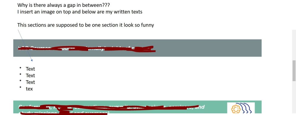 I am trying to create a site on SharePoint online, I notice that when I insert a image as header and then input text at the bottom, there's always a gap. It just don't look like it's one section, how can I remove the gaps? Attached image