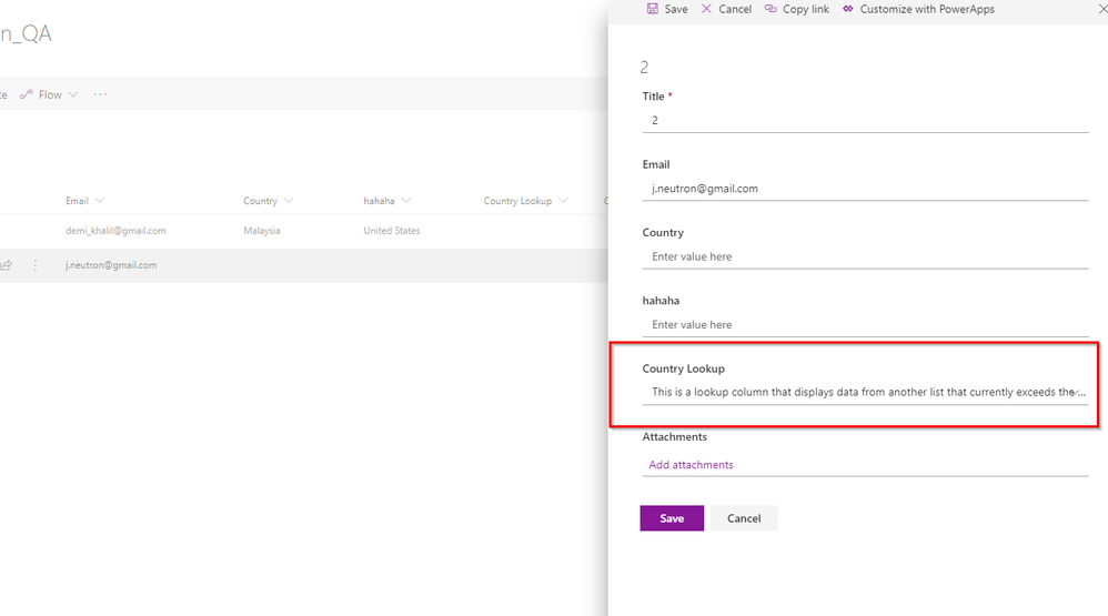 izzatdarani Historically (using Classic experience) the threshold for lookup of elements in a list has been 5.000 and as far as i know this has not changed.