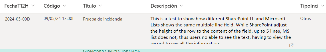 This is how MS List shows the row: