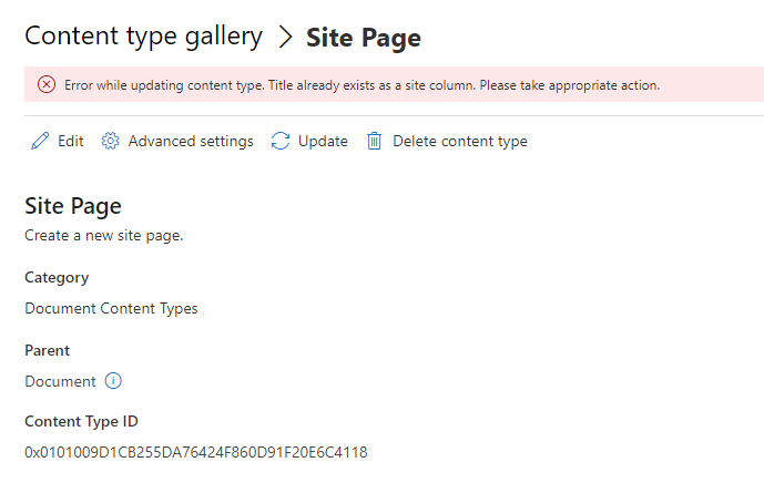 I have opened the SharePoint Admin Center and clicked on Publish so all content types throughout all site collections get updated. However I get this error when I click on Update.