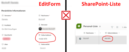 SharePoint shows different date values in EditForm and actual SharePoint List