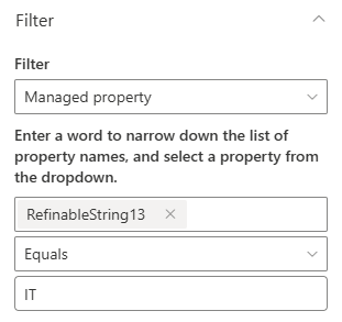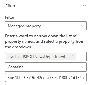 I would like to have a news Webpart on a website site/Intranet, which is able to filter for certain news released on site/IT. For that purpose, I created a Termset and integrated the according coloumn in both site's page libraries. Now, when I'm trying to filter for those news on site/intranet (they are tagged with "Security" in site/IT), I can find the coloumn (owstaxidThema), but I cannot for the live of me get it to filter for anything. No matter which input I insert in "Title contains...", I get an empty response. I already tried to register that Termset in the microsoft search admin center under another label, that didnt bring any success either. Any help would be much appreciated.