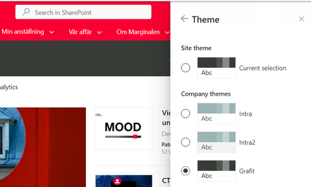 Hi! I have created 2 communication sites and applied a custom theme, one of them are a hub site But the theme does not behave the same on regular communication sites and the hubsite, the color i...