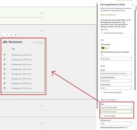 Sharepoint Webseite - Webart Filter "Titel enthält die Wörter"