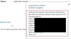 Hi wbaer. Thanks. It's really very easy to replicate. All it needs for the error to appear is to create a a list (List A) with simple workflow with a task inside an AppStep. The task should be as simple as writing to another list (LIST B). People who have access to LIST A should not have any access to LIST B. Then just run the workflow and it gets suspended on the AppStep.
