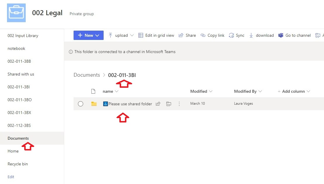 When we go to 002Legal Site, from Current Navigation we can open folder and see Data in this folder.