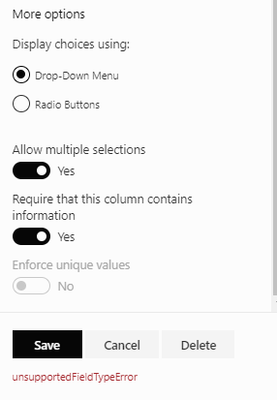 I have a SP list with existing columns created as Choice. I would like to update those columns to allow for multiple selections. SP appears to want to let me but I get an error when trying to sa...