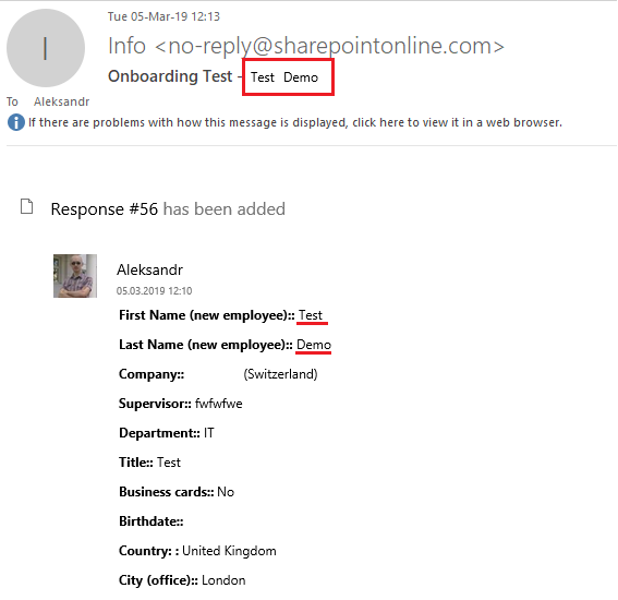 I receive the alerts of the surveys. Is it possible to change the email Subject according to some fields in the survey? For example, I received this email: