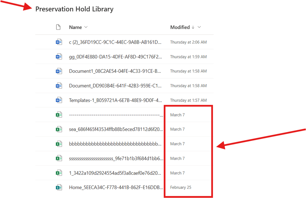 and the "PreservationHoldLibrary" ,library for 15 March:-