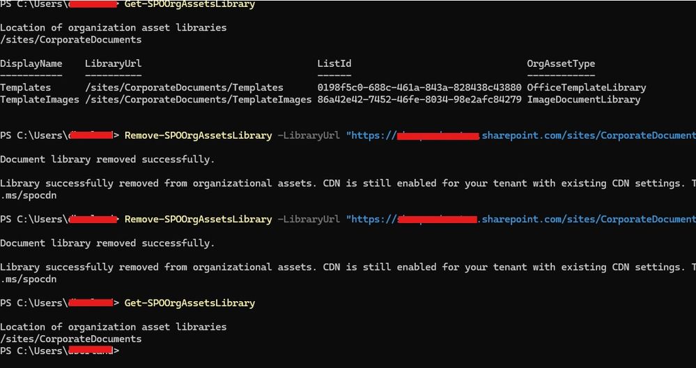 PS C:\Users\XXXXX> Remove-SPOOrgAssetsLibrary -LibraryUrl "https://orgname.sharepoint.com/sites/CorporateDocuments/templates"