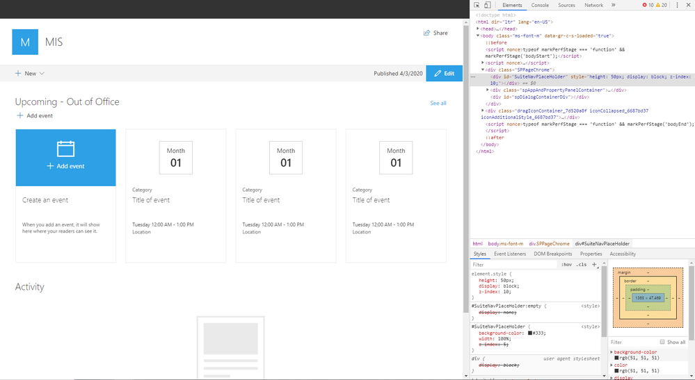 When I inspect the page on SPCA it shows the full code for the suitebarTop navigation menu