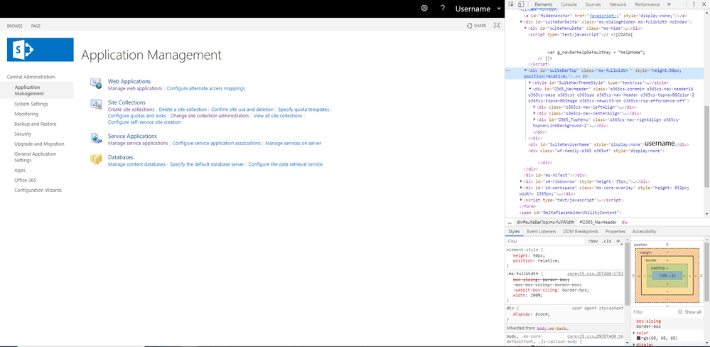 If I do the same thing on any of my web applications that code is replaced with SuiteNavPlaceholder. It used to be the same as the Central Administration and have the suiteBarTop div.