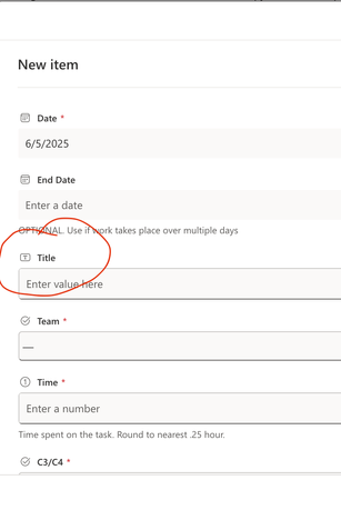 My organization has been using Lists for its time tracking & workplan for a few years. Previously the Title field was required by default when a new list was created.