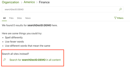 Hi, I have been testing the search in sharepoint online in order to find documents by document id and metadata. For this test I have two team sites, Finance and Demo. Each team site is using its ow...