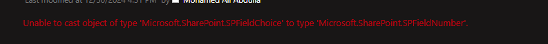 Unable to cast object of type 'Microsoft.SharePoint.SPFieldChoice' to type 'Microsoft.SharePoint.SPFieldNumber'.