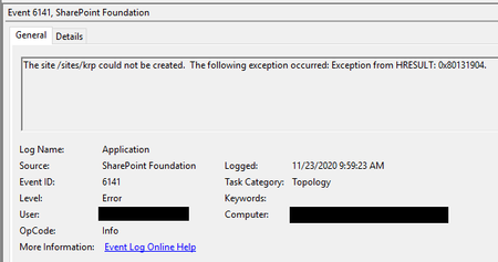 I have a 2019 farm with a few site collections. I noticed a few weeks ago I was no longer able to create new site collections. I got the error msg, Sorry, something went wrong. I zipped up the logs a...