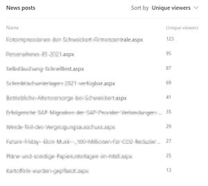 Hello, how can I look at the calling (unique views) of a news page? Like this from website usage but with a longer list. Regards Stefan