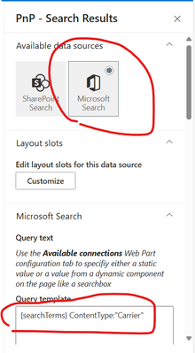 I have added a Search Result inside PnP Modern Search web part, with those settings: And i added those slots which are linked to Search managed properties:- and i added those to t...