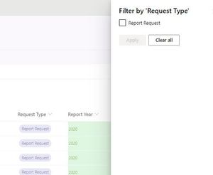 Try adding indexing on your Request Type column, follow: Add an index to a list or library column