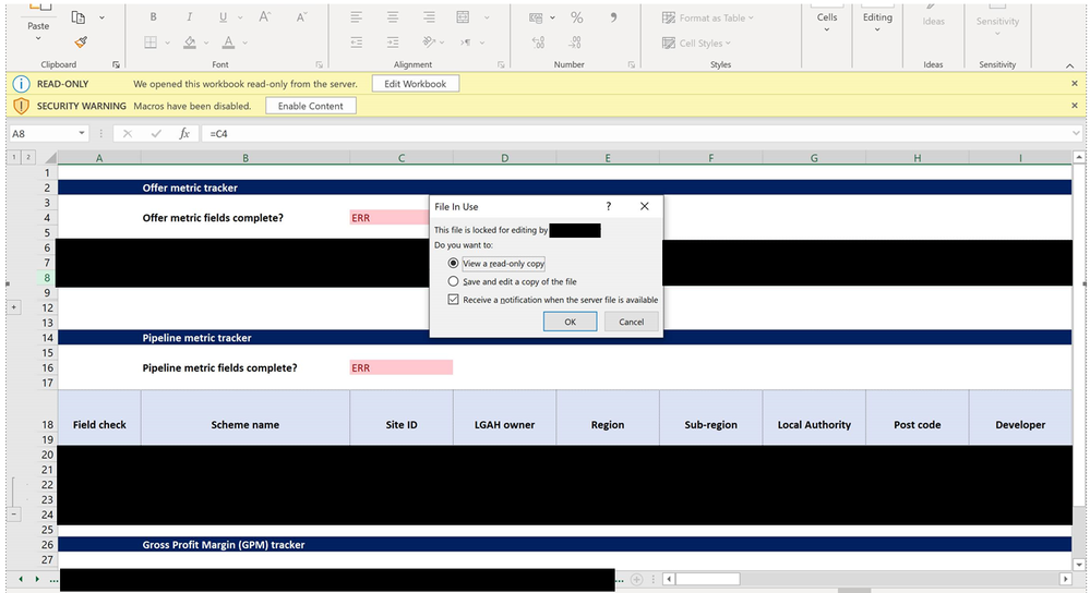 "We opened this workbook read-only from the server" "Edit Workbook"