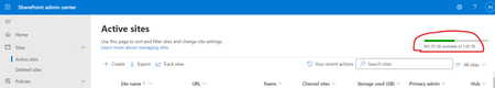 Your organization has a total storage of 1 TB plus 10 GB per license of eligible plan purchased, plus any Microsoft 365 Extra File Storage add-on purchased