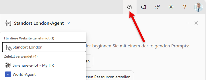 you can find your SharePoint Agents on the top right: