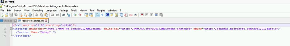 After adding wm.service to local admin group, the FabricHostSettings.xml file: