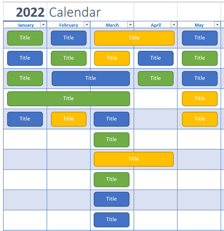 I’m looking for an online departmental forward plan like this: The specifications are: Months appear horizontally Scroll back and forward to previous years Up to 10 entries visible Col...