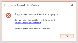 Everything was working fine till Dec 2017 and then new features / service patches were rolled out to all Tenants. all of a Sudden PowerPoint stopped working in AppWeb. apparently Microsoft has not discovered this issue as only 2 of us have reported it so far i guess. Even if Microsoft decides to fix the issue, it will take at least 2/3 months for them update all tenants. This used to be really easy earlier with KB patches, cumulative packs, services packs that were available on demand. we have no other option but to wait till Microsoft fix this on all Tenants.