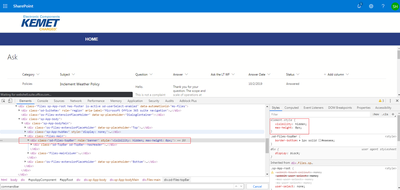 Fortunately there are no errors in the console. When troubleshooting with the developer tools, I found the control is hidden. Below highlighted is the control and its attribute is hidden. This is not our class. Not sure why its hidden.