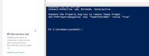 Hi all, I am trying to hide the create teams prompt on left hand side of a modern site I set Teamify hidden to true using PowerShell but the prompt is still there? Script completes successfully. ...